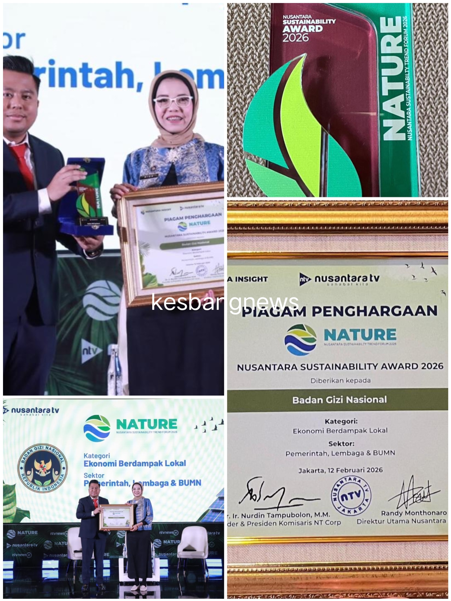 Jakarta – Badan Gizi Nasional (BGN) menerima Nusantara Sustainability Award 2026 dalam acara Nature yang diselenggarakan Nusantara TV. Penghargaan ini diberikan pada kategori “Ekonomi Berdampak Lokal” sektor Pemerintah, Lembaga, dan BUMN.