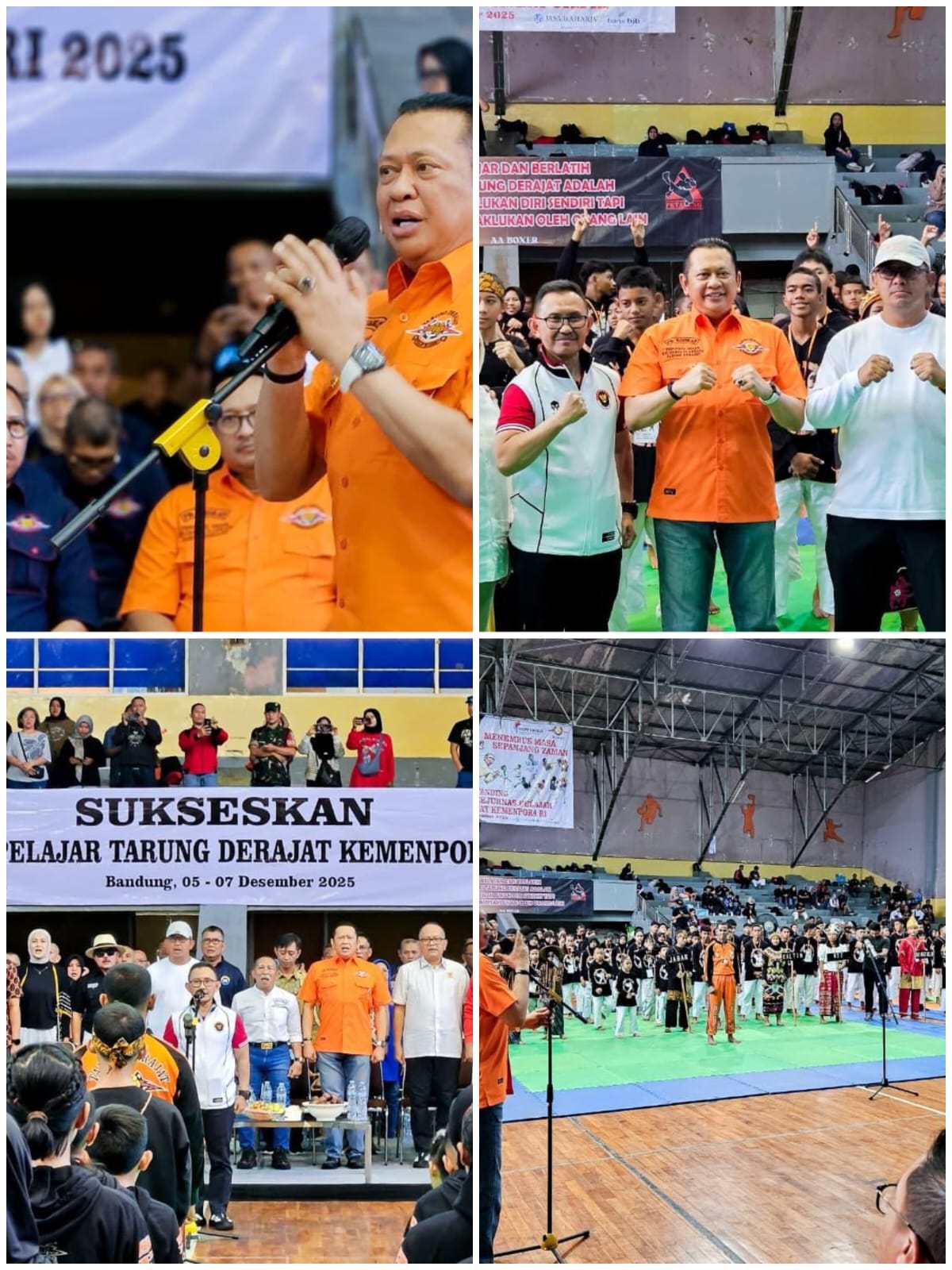 *BANDUNG* – Anggota DPR RI sekaligus Ketua MPR RI ke-15 dan Ketua Umum Pengurus Besar Keluarga Olahraga Tarung Derajat (PB Kodrat), Bambang Soesatyo, mengapresiasi terselenggaranya Kejuaraan Nasional (Kejurnas) Pelajar Tarung Derajat Kemenpora RI 2025 yang digelar pada tanggal 5–7 Desember 2025 di GOR Pajajaran, Bandung. Kejuaraan ini menjadi sarana penting dalam menyiapkan generasi muda berkarakter kuat, berdisiplin, dan berdaya saing tinggi melalui olahraga bela diri asli Indonesia.