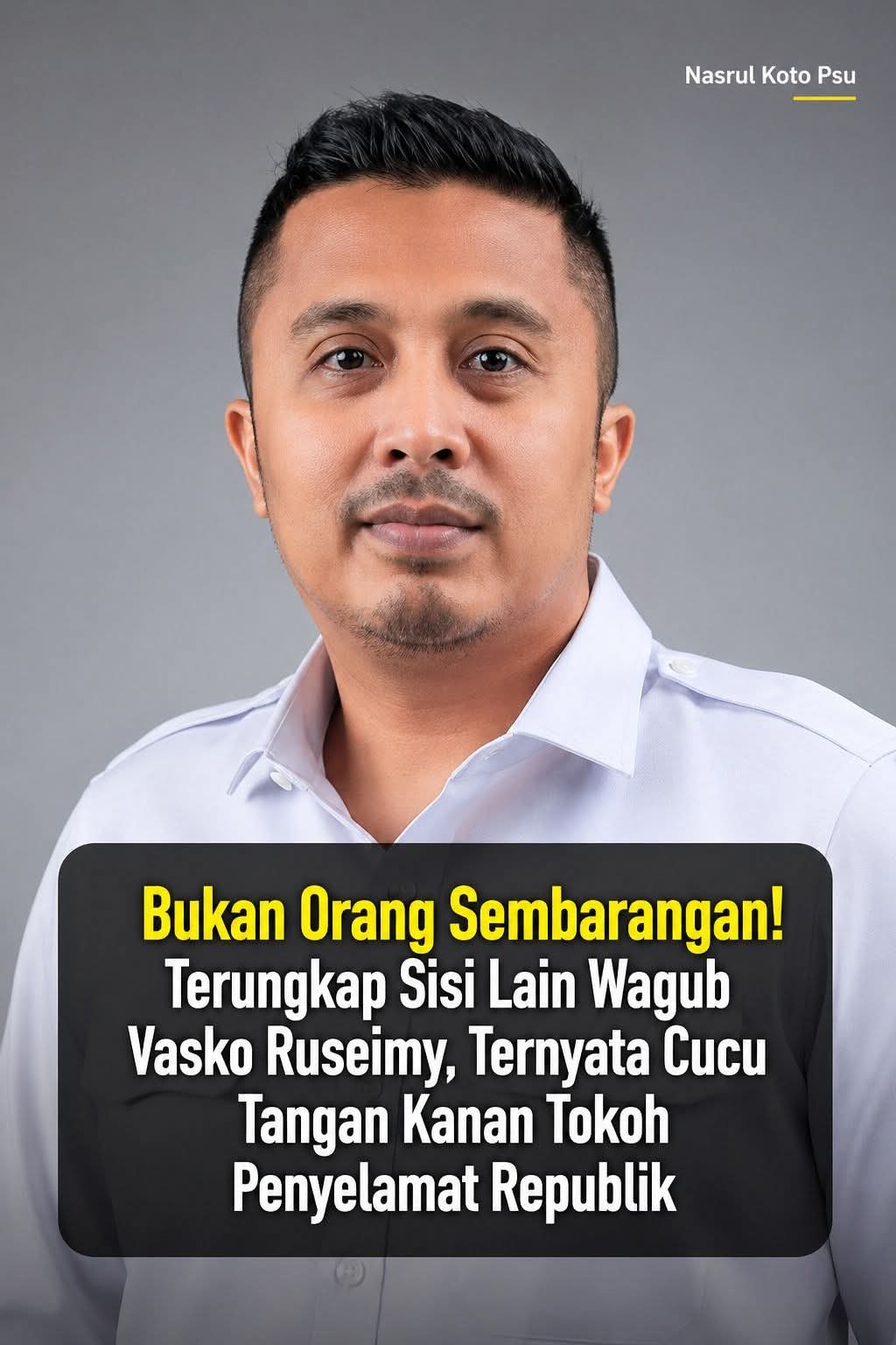 Selama ini, publik mengenal Vasko Ruseimy sebagai sosok Wakil Gubernur Sumatera Barat yang energik, seorang pengusaha sukses, sekaligus figur populer di dunia digital melalui kanal YouTube Macan Idealis. Namun, di balik citra modern dan gaya kepemimpinannya yang santai, tersimpan sebuah fakta sejarah yang selama ini jarang terekspos: Vasko adalah pewaris darah pejuang dari salah satu tokoh kunci masa mempertahankan kedaulatan Indonesia.