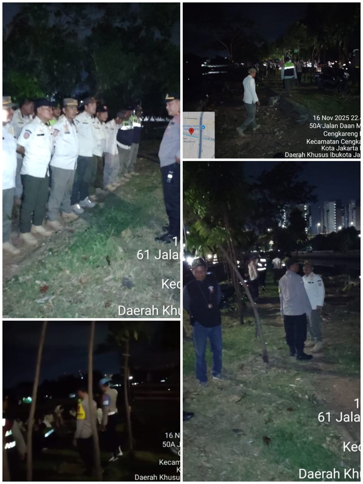 Jakarta Barat, Dalam rangka menindaklanjuti aduan masyarakat terkait adanya dugaan Prostitusi Sesama Jenis serta mengantisipasi potensi kerawanan di area pertamanan Kali Mookervart, Jl. Daan Mogot KM 11, Polsek Cengkareng bersama Satpol PP Kecamatan Cengkareng menggelar patroli gabungan, Minggu (16/11/2025) malam.