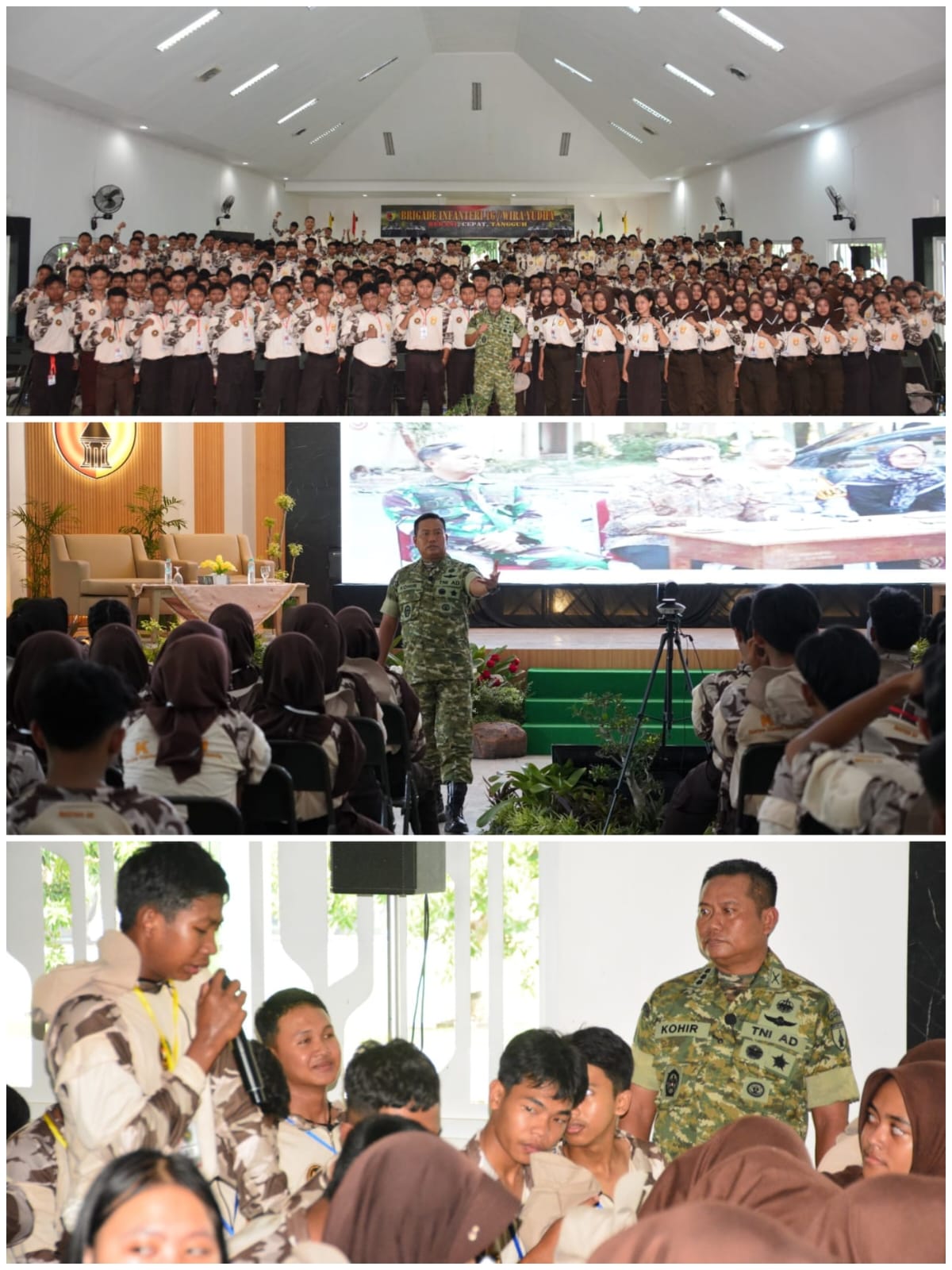 Kediri — Danrem 083/Baladhika Jaya Kolonel Inf Kohir kembali menunjukkan komitmen TNI AD dalam membina generasi muda melalui kegiatan Ceramah Kebangsaan kepada 500 peserta KKRI Gelombang III TA 2025 di Aula Brigif 16/Wirayudha. Kegiatan ini berlangsung dengan penuh perhatian dari seluruh peserta.