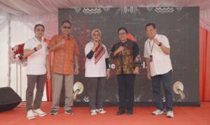 (kiri ke kanan) VP Corporate Communication Telkom Andri Herawan Sasoko, Komisaris Telkom Rizal Mallarangeng, Direktur Utama Telkom Dian Siswarini, Direktur Wholesale & International Business Service Telkom Honesti Basyir, dan EVP Telkom Regional V Amin Soebagyo saat acara Press Conference peresmian fasilitas edge data center neuCentrIX Telkom ke-28 yang berlokasi di Jayapura, Papua pada Kamis (4/12).