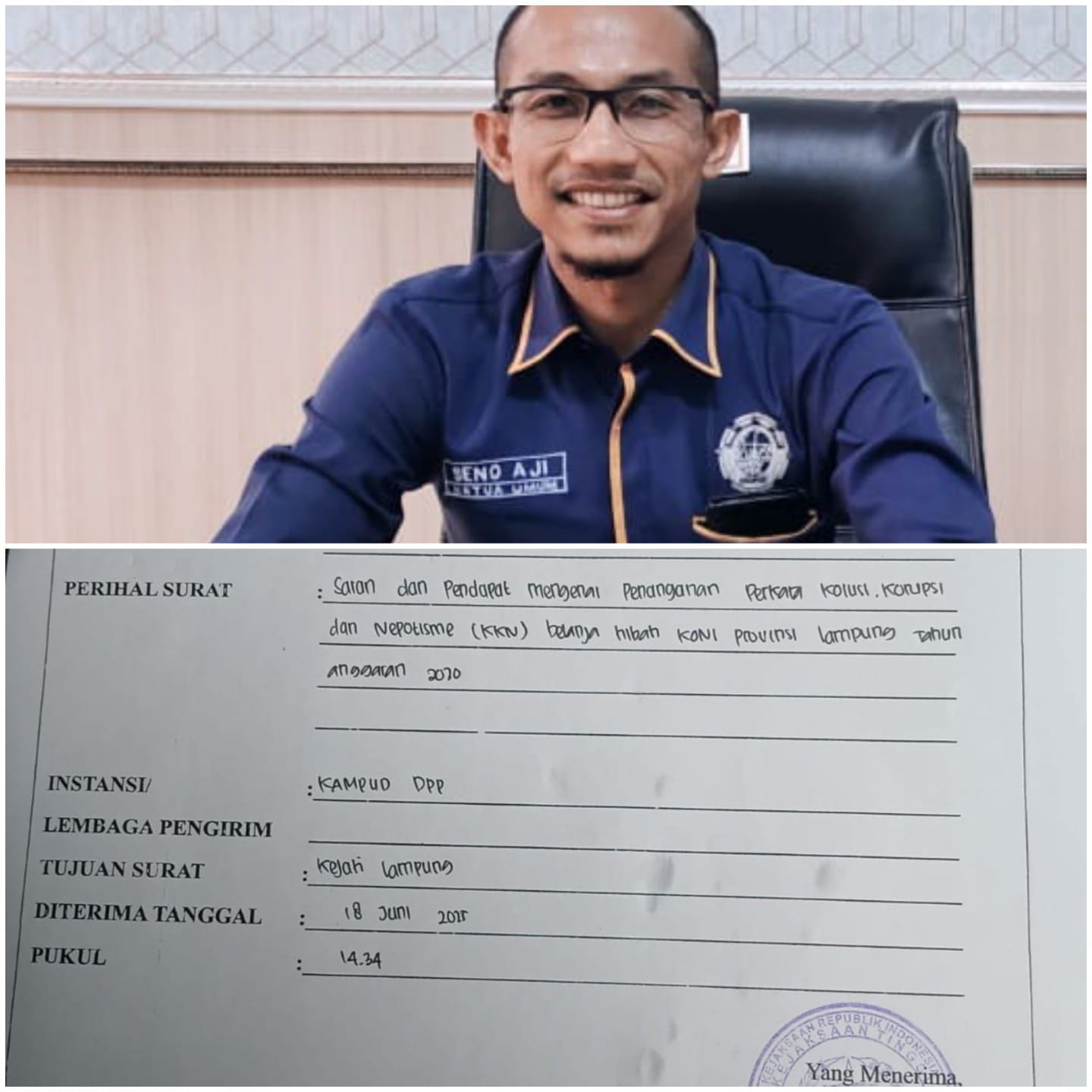 “Berdasarkan peraturan pemerintah (PP) nomor 43 tahun 2018 pasal 11 yang pada intinya menyatakan masyarakat dapat menyampaikan saran dan pendapat secara bertanggungjawab kepada aparat penegak hukum mengenai penanganan perkara korupsi, maka DPP KAMPUD secara formal telah mendaftarkan saran dan pendapat atas permintaan penetapan tersangka lain khususnya mantan ketua umum KONI Provinsi Lampung yaitu berinisial MYSB, adapun dasar penetapan tersangka lain hasil kajian terhadap dokumen laporan hasil audit independen dengan nomor laporan LI.22/MCI-KjkTngLpg/1114 yang ditujukan kepada Kepala Kejati Lampung perihal perhitungan kerugian keuangan negara atas perkara dugaan tindak pidana korupsi penyalahgunaan anggaran belanja hibah Pemerintah Provinsi Lampung tahun anggaran 2020 kepada pengurus KONI Provinsi Lampung”, jelas Seno Aji.