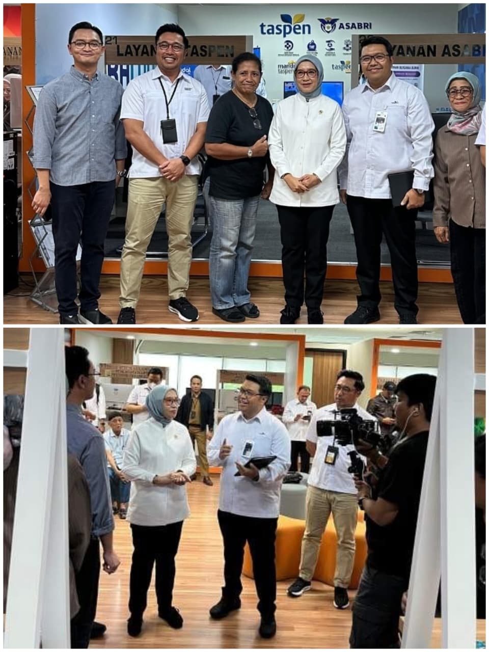 Foto : Menteri PAN RB Rini Widyantini disambut Kepala Kantor Taspen Cabang Jakarta 1 Yoka Krisma Wijaya, saat meninjau peran aktif TASPEN dalam memberikan layanan kepada para ASN dan peserta Pensiunan yang hadir dalam Mall Pelayanan Publik (MPP) Jakarta yang berada di Gedung DPMPTSP PEMPROV DKI JAKARTA.