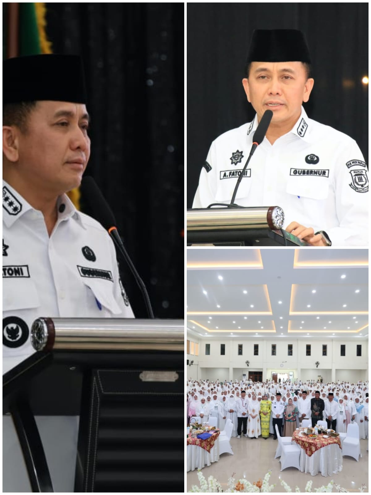 Jayapura. Penjabat (Pj) Gubernur Papua Agus Fatoni bersama Pj. Ketua TP PKK Tyas A. Fatoni menghadiri peringatan Maulid Nabi Muhammad SAW yang diselenggarakan Panitia Gabungan Peringatan Hari Besar Islam (PHBI) Provinsi Papua di Gedung LPTQ Provinsi Papua, Jayapura, Papua, Sabtu (4/10/2025).