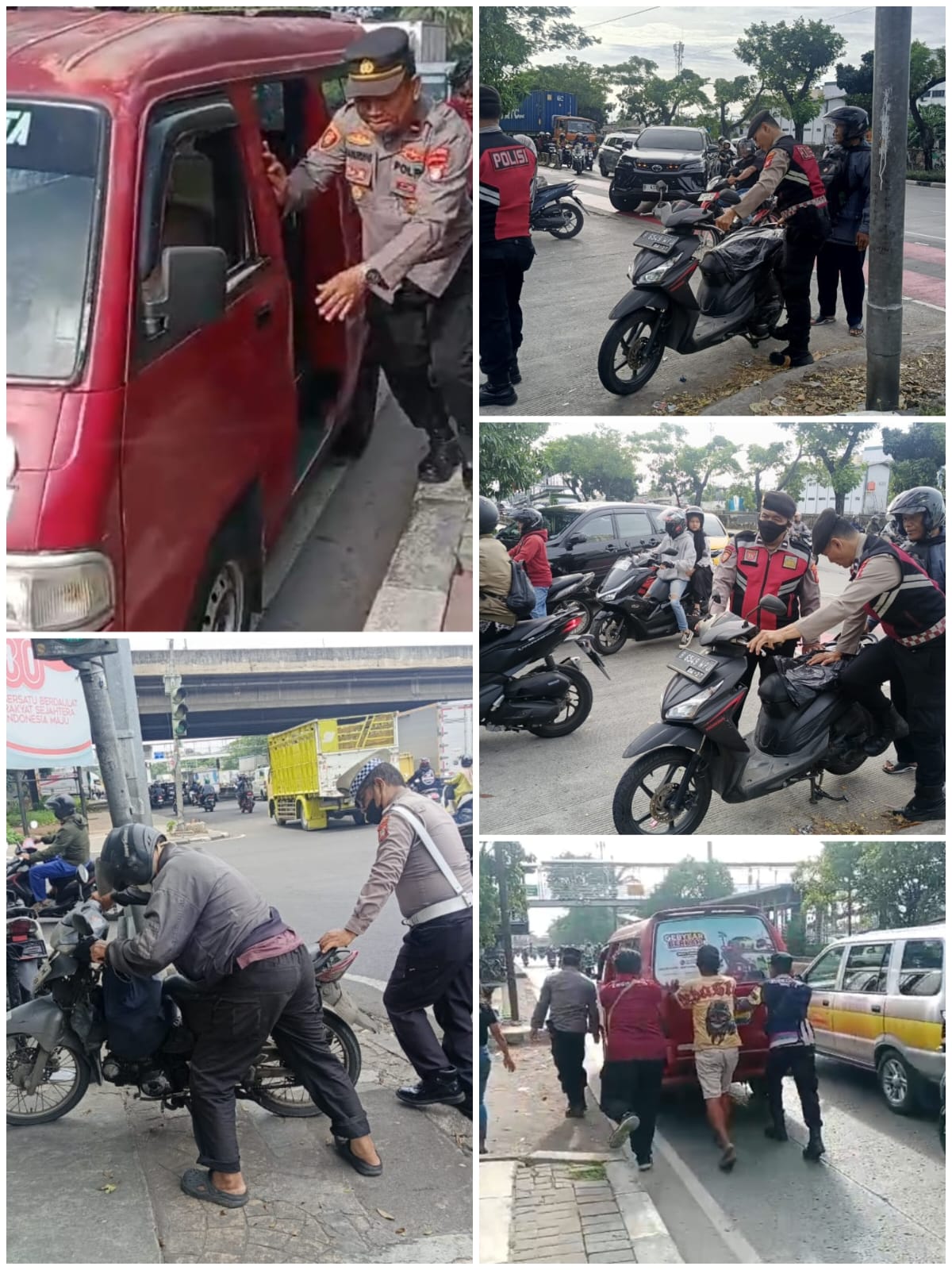 Humanis dan Tanggap, Anggota Polsek Cengkareng Bantu Pengendara Yang Mengalami Mogok saat Gatur Lalin*