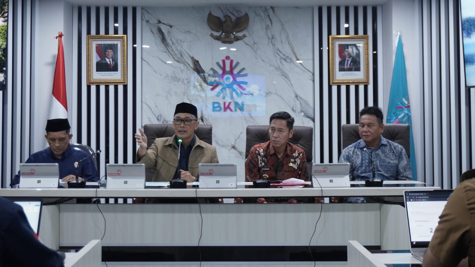 “BKN terus menyempurnakan sistem seleksi JPT agar benar-benar mampu memilih pejabat yang tepat pada posisi yang tepat. Sistem seleksi untuk memilih pejabat yang tepat dalam posisinya terus kita kembangkan dengan menggunakan manajemen talenta. Ini menjadi instrumen penting untuk mewadahi kader-kader terbaik sesuai kebutuhan dan spesifikasi jabatan,” ungkapnya dalam pembukaan tahapan asesmen seleksi JPT Utama BSN, Senin (23/02/2026) di Kantor BKN Pusat, Jakarta.