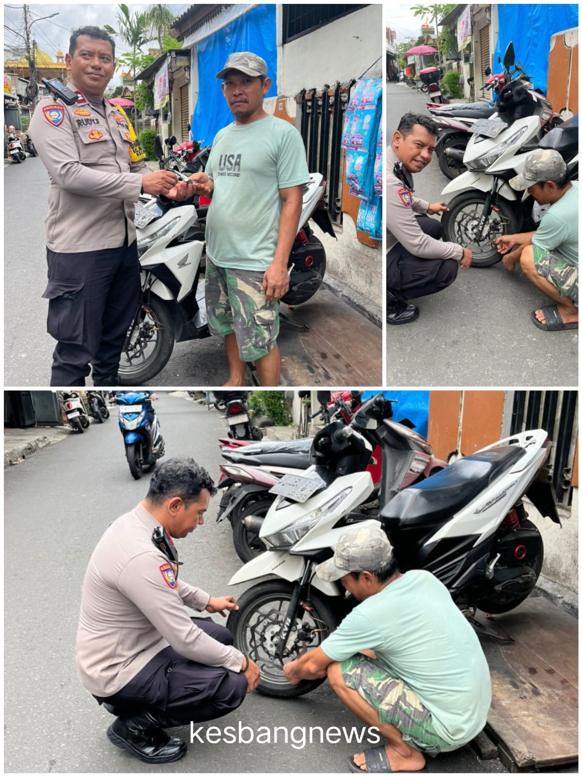 Dalam suasana yang akrab dan humanis, Bhabinkamtibmas memberikan edukasi pentingnya penggunaan kunci ganda dan gembok tambahan pada kendaraan bermotor.