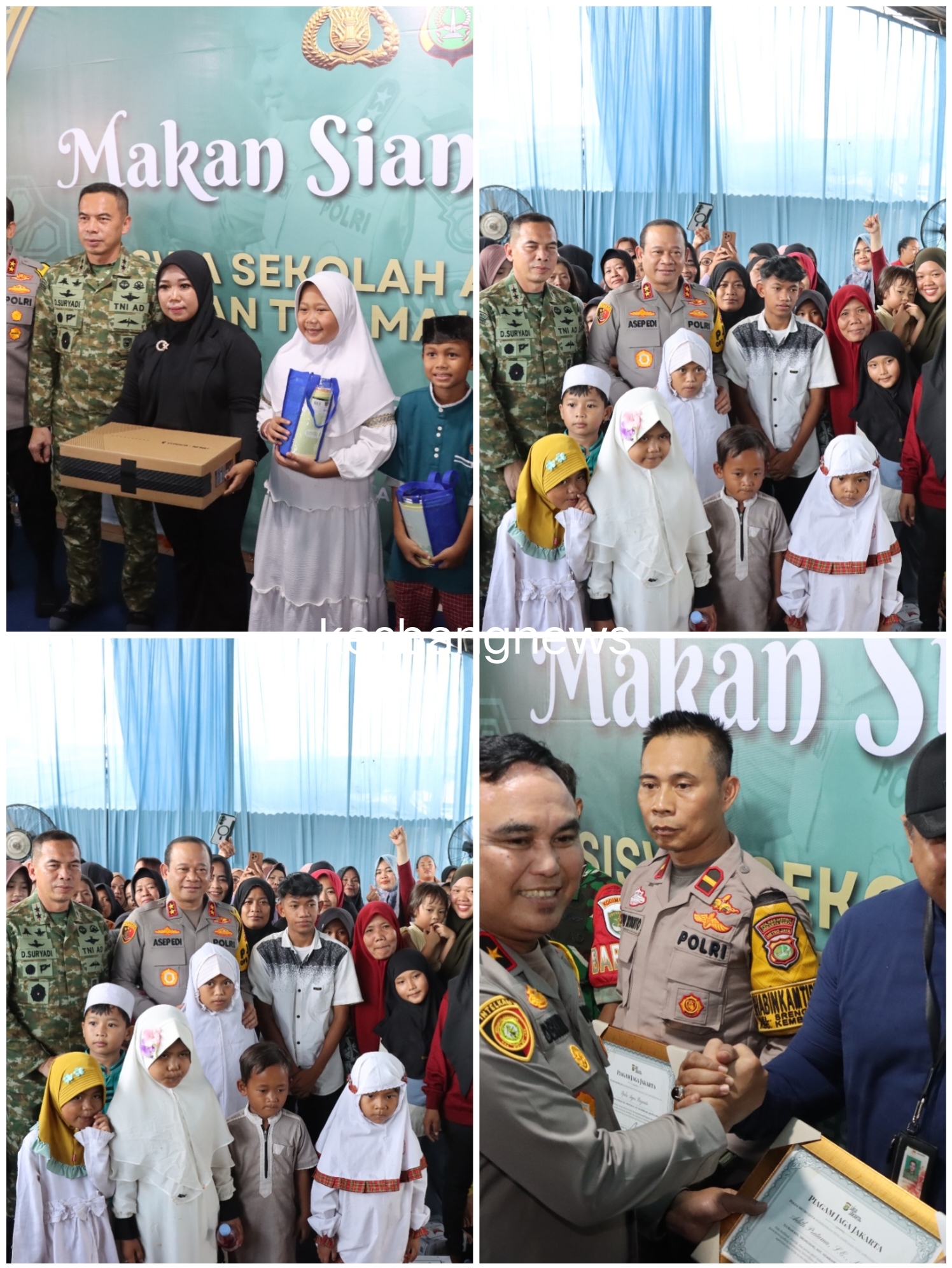 Memulai kunjungannya, Irjen Asep langsung mengajak makan siang bersama warga masyarakat yang merupakan wali murid dan murid-murid sekolah TPA Maju Bersama.