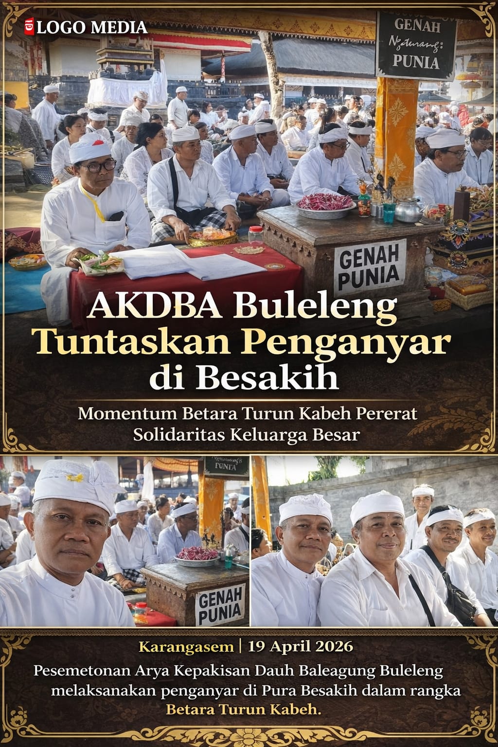 Karangasem, Bali — Dalam rangka upacara agung Betara Turun Kabeh yang bertepatan dengan Purnama Kedasa, keluarga besar Pesemetonan Arya Kepakisan Dauh Baleagung (AKDBA) Kabupaten Buleleng menuntaskan rangkaian kegiatan penganyar di Pura Besakih dengan penuh khidmat.