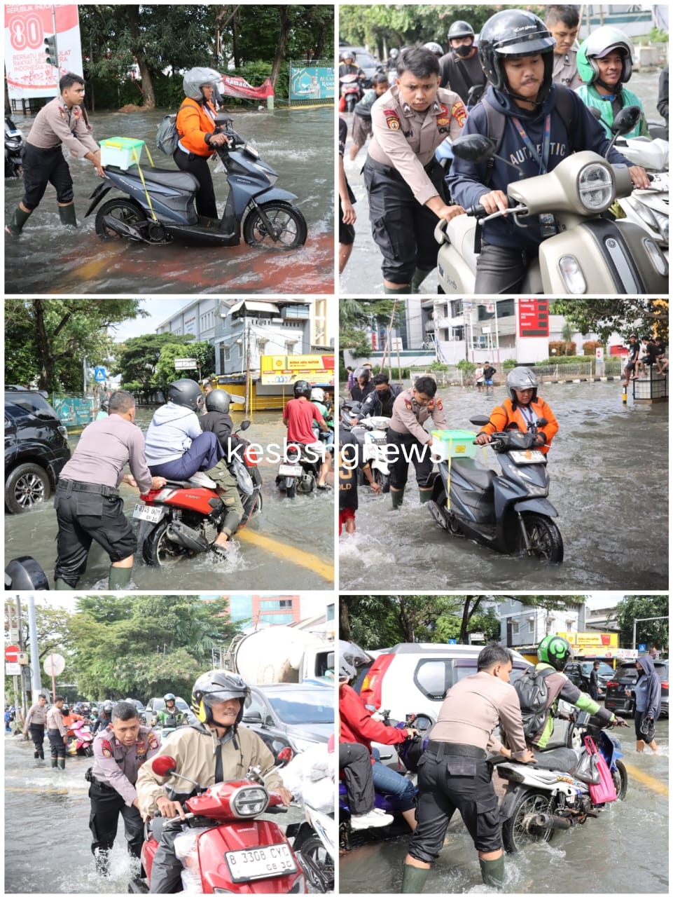 “Kami hadir untuk membantu masyarakat, baik dalam pengaturan lalu lintas maupun membantu pengendara yang kendaraannya mogok akibat genangan air,” ujarnya.