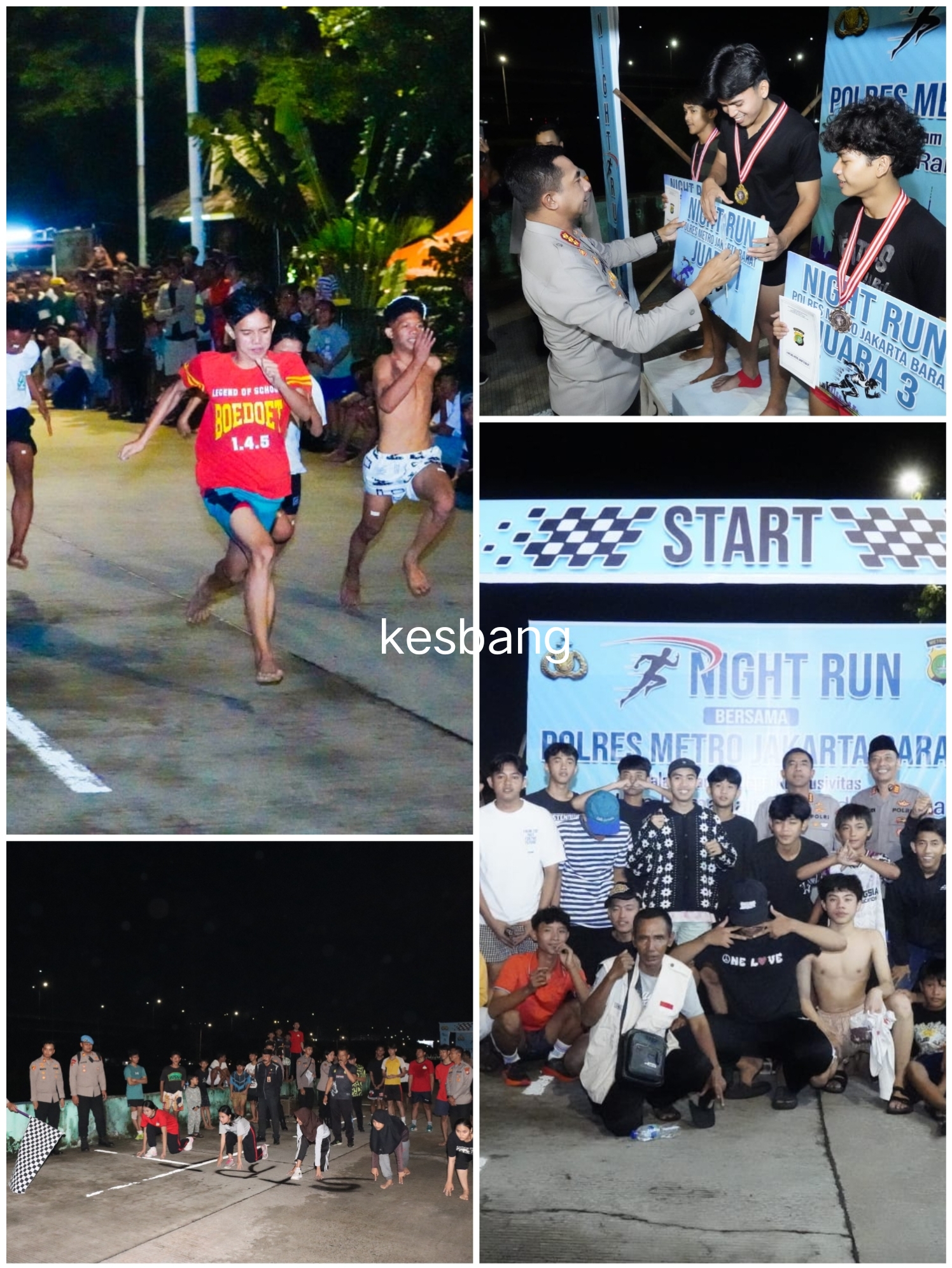 Ratusan remaja berkumpul dengan penuh semangat mengikuti lomba balap lari malam (Night Run) yang digelar oleh Polres Metro Jakarta Barat.