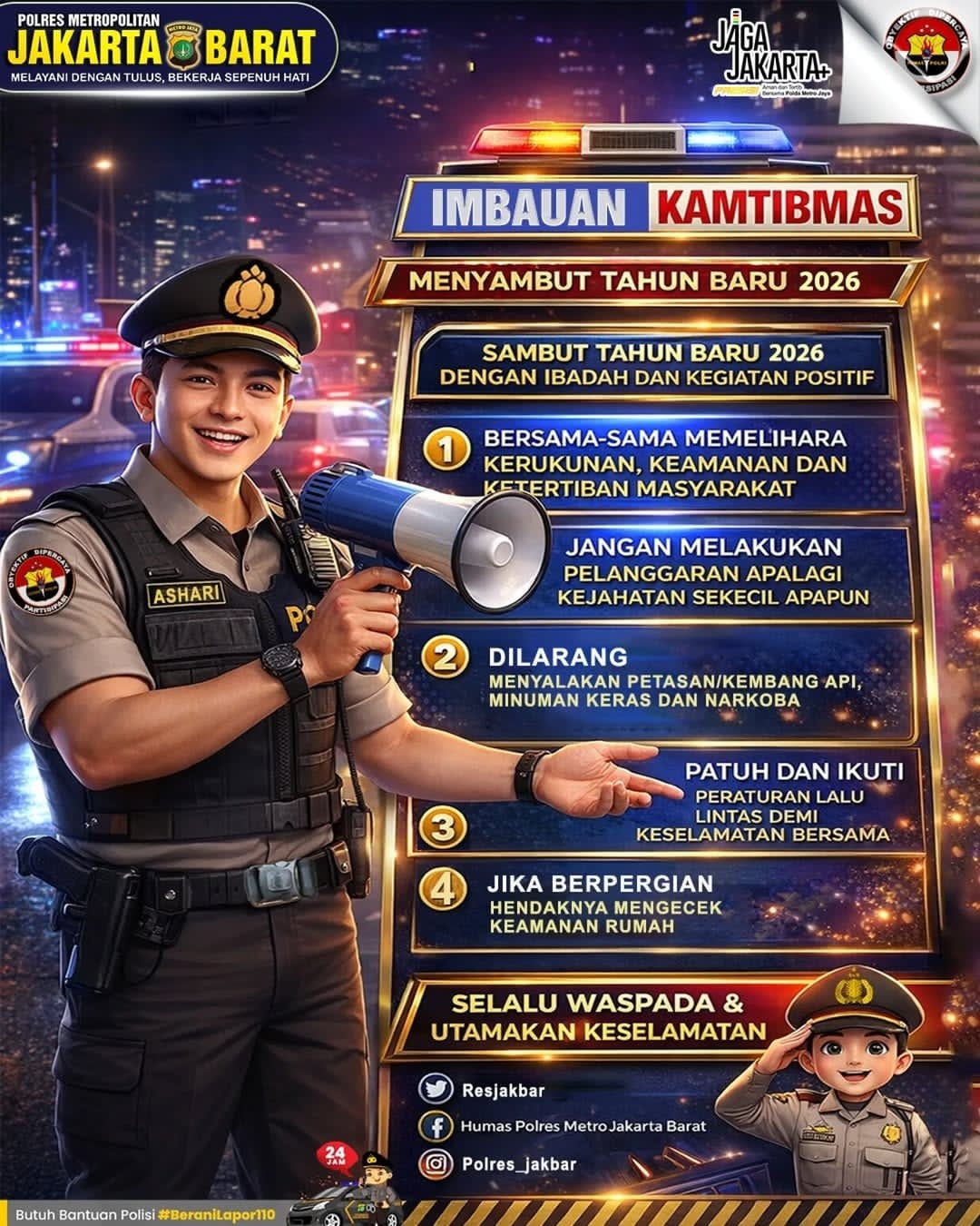 Polres Metro Jakarta Barat Imbau Warga Tak Nyalakan Petasan/Kembang api di Malam Tahun Baru 2026, Wujud Empati Korban Bencana*