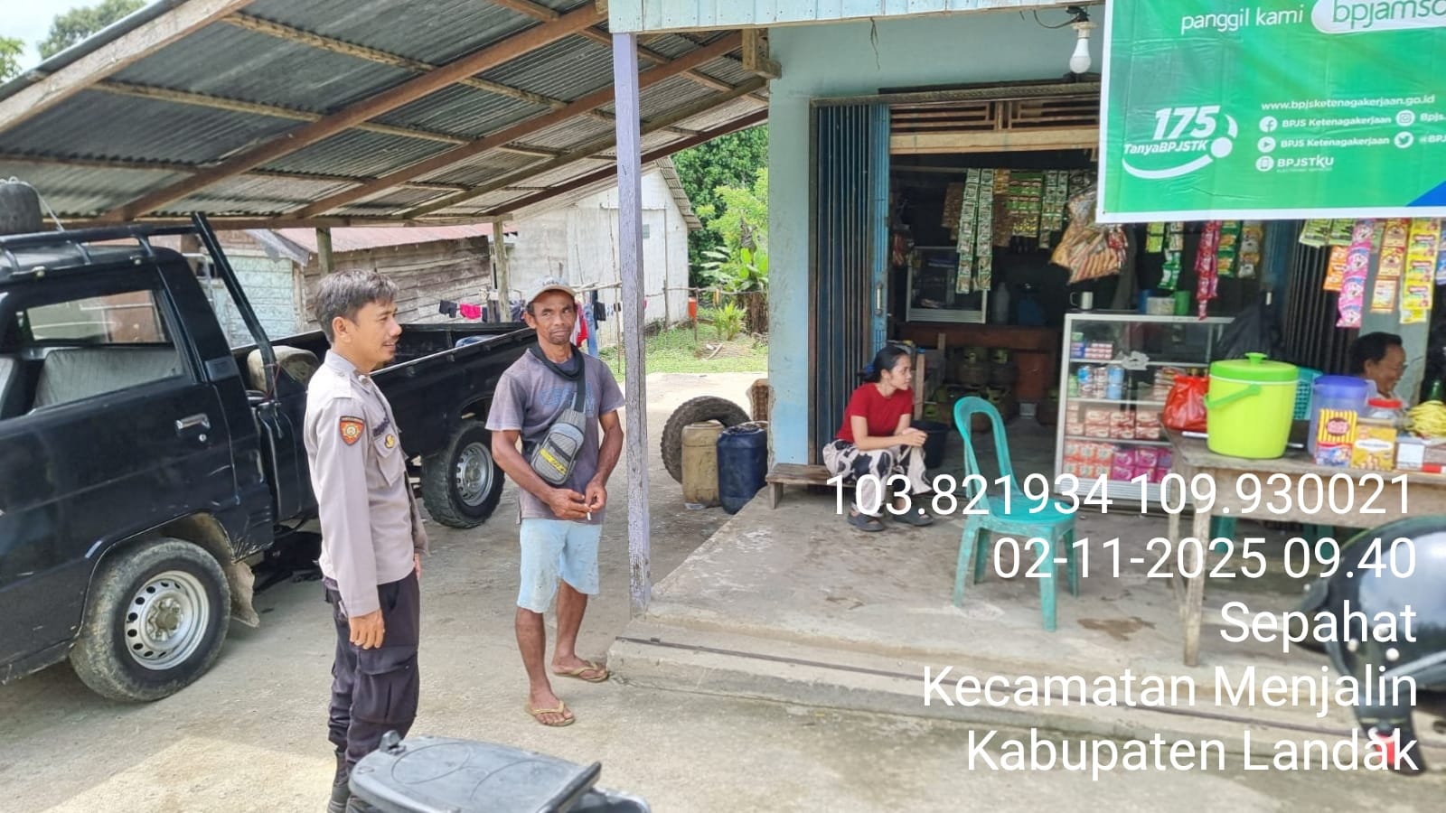 Dalam rangka menciptakan situasi keamanan dan ketertiban masyarakat (Harkamtibmas) yang aman dan kondusif, anggota Polsek Menjalin Polres Landak Polda Kalbar melaksanakan patroli dialogis di tengah aktivitas masyarakat, Minggu (2/11/2025).