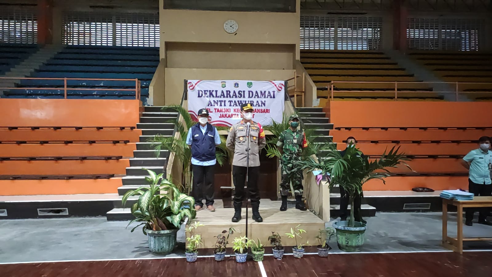 JAKARTA – Polsek Metro Tamansari Jakarta Barat menggelar deklarasi anti tawuran di GOR Lokasari, Kelurahan Tangki, Jakarta Barat.