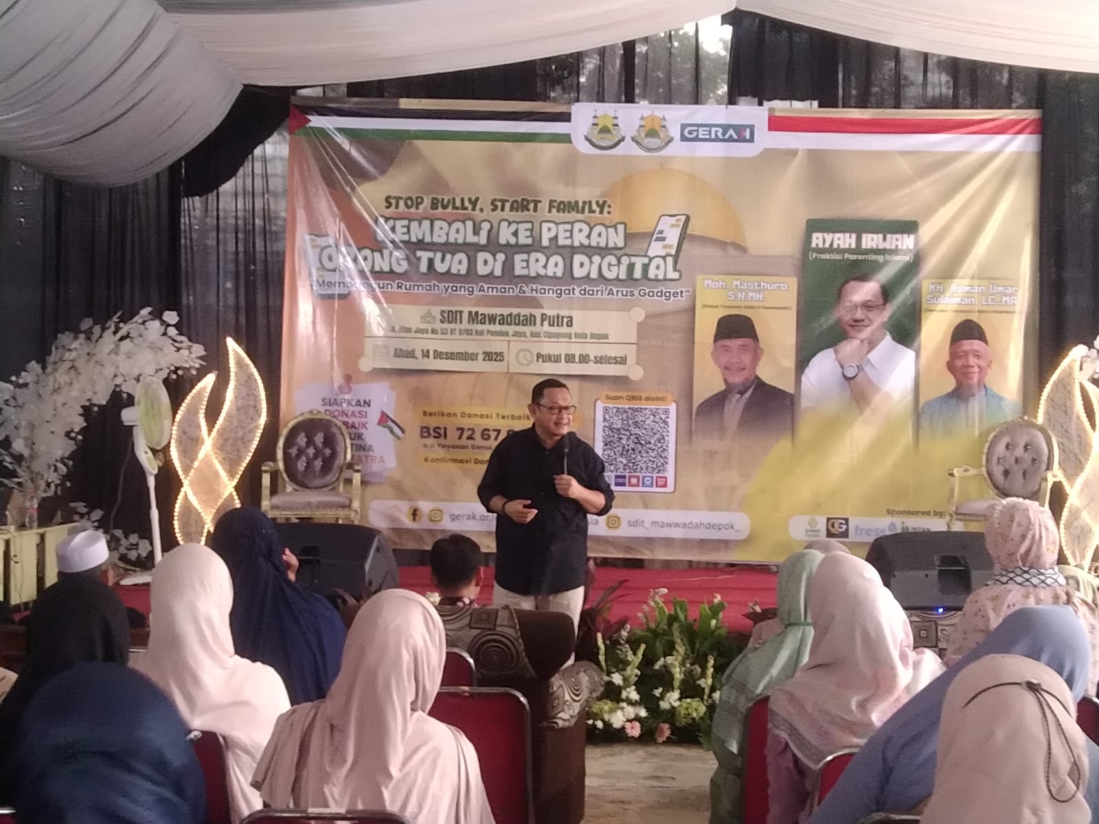 Seminar parenting menghadirkan Ayah Irwan (Irwan Rinaldi) sebagai narasumber. Dalam pemaparannya, Ayah Irwan menekankan pentingnya kolaborasi antara orang tua dan sekolah dalam menciptakan lingkungan belajar yang aman, nyaman, dan penuh kasih sayang, sekaligus membangun komunikasi yang efektif dengan anak sejak dini.