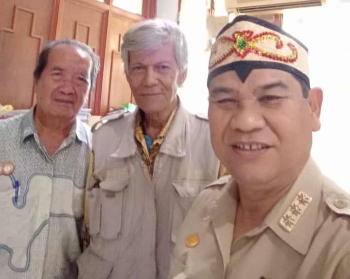 Teks Gambar: Datuk Maharadjo Nan Basa(tengah), diapit oleh dua tokoh, kepala Suku Dayak Kalimantan.(Foto:Istimewa)