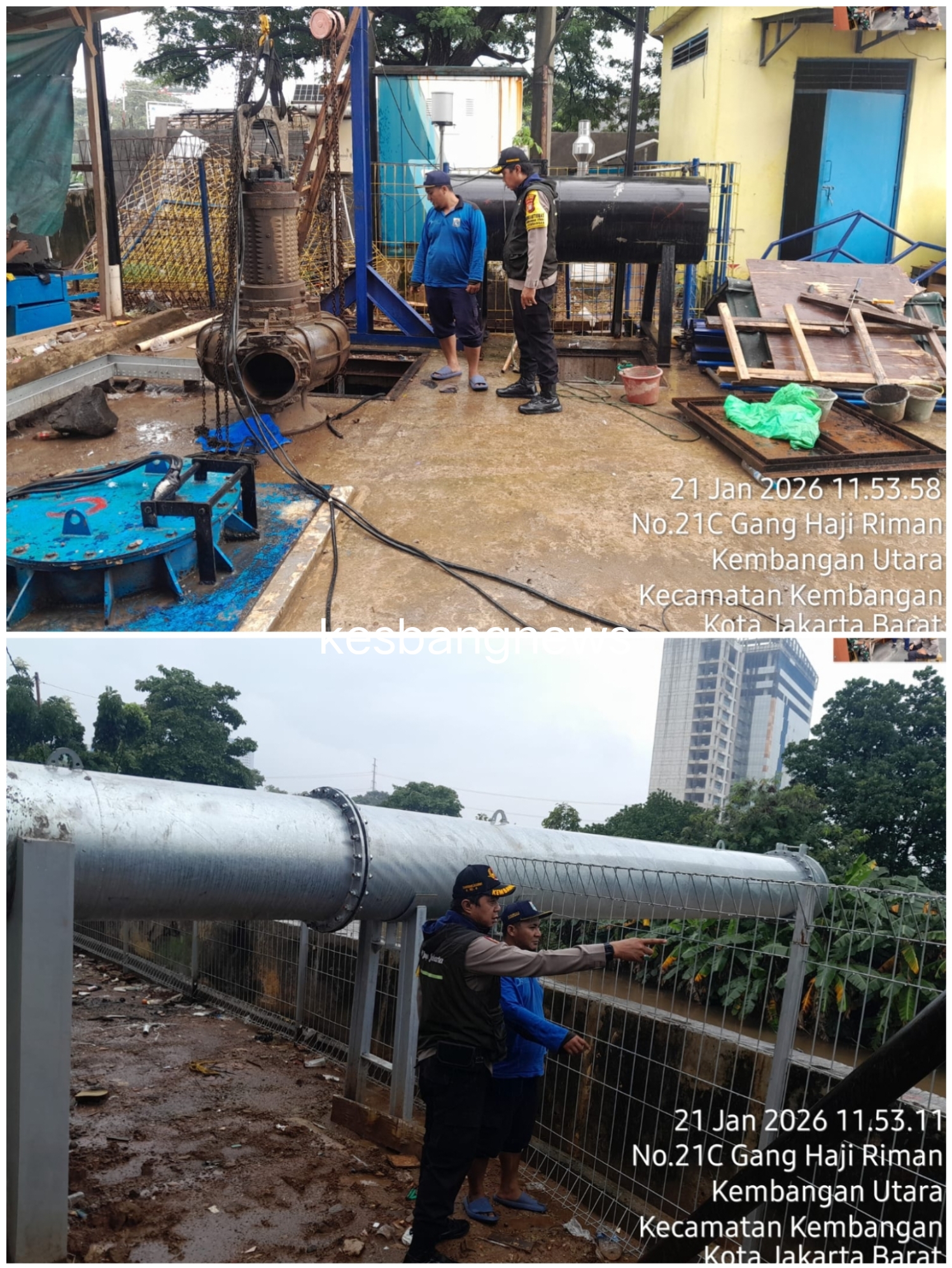 Jakarta Barat, Dalam rangka mengantisipasi potensi banjir serta memastikan keamanan dan kenyamanan warga, Bhabinkamtibmas Kelurahan Kembangan Utara Polsek Kembangan Polres Metro Jakarta Barat, Aiptu Bambang Harwanto, melaksanakan kegiatan pengecekan Rumah Pompa Kembangan Utara RW 001 sekaligus pemantauan ketinggian air Kali Angke yang melintas di wilayah Kembangan Utara, Jakarta Barat, pada Rabu (21/01/2026)