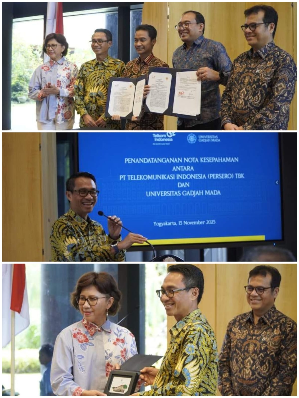 Salah satunya diwujudkan melalui penandatanganan Memorandum of Understanding (MoU) dengan Universitas Gadjah Mada (UGM) yang dilaksanakan di Yogyakarta, pada Sabtu (15/11). Kerja sama ini merupakan bagian dari komitmen Telkom dalam memperkuat talenta digital serta mendorong pemanfaatan teknologi AI yang inklusif, kolaboratif dan berdampak bagi kedaulatan digital Indonesia.