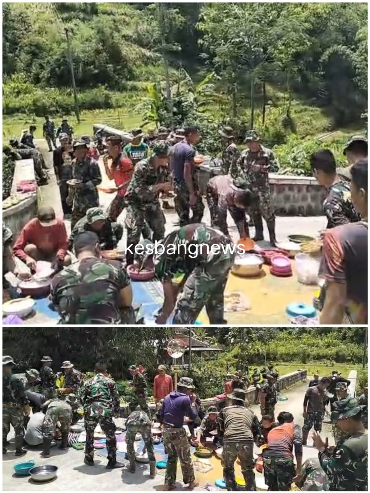 Momen makan bersama nasi kondangan/bungkus menunjukkan kekompakan, di mana warga secara swadaya menyiapkan makanan untuk prajurit yang bertugas membangun infrastruktur desa.