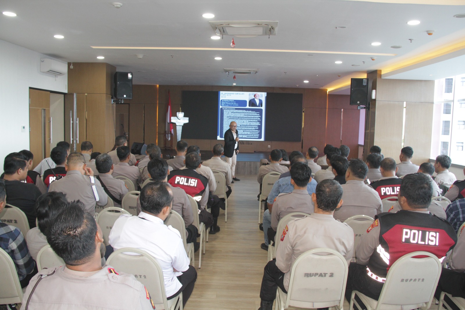 Hadir dalam kegiatan tersebut Wakapolres Metro Jakarta Barat AKBP Rezi Dharmawan, S.I.K., M.I.K., Kabag SDM Kompol Leny Winarti, Kasat Tahti Kompol Yusfianto, Kasikum Kompol Yuli, Kasiwas Kompol Rusmiyati, serta para narasumber Dr. Muhammad Saifulloh, S.Sos., M.Si., dan Citra Eka Putri, S.I.Kom., M.I.Kom.