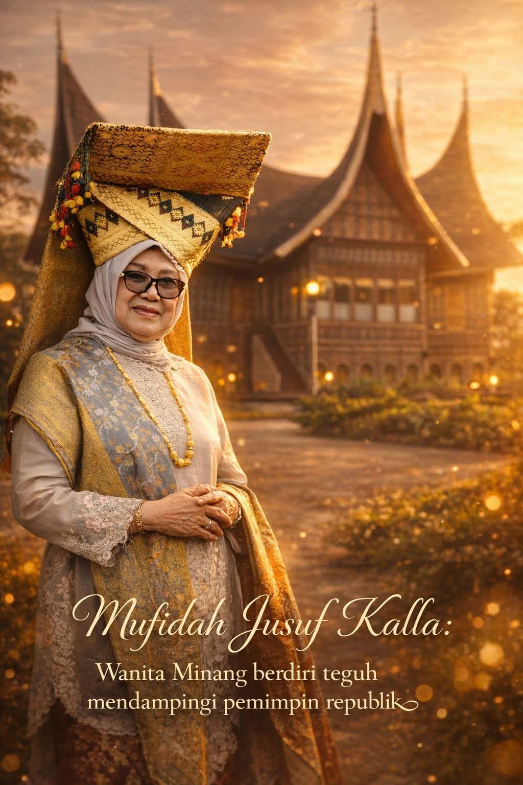 Mufidah Jusuf Kalla adalah representasi kuat perempuan Minangkabau yang tumbuh dengan nilai adat, keteguhan, dan kehormatan keluarga. Lahir pada 12 Februari 1943 di Sibolga, Sumatera Utara, dari keluarga perantau Minang asal Lintau Buo, Tanah Datar, ia dibesarkan dalam tradisi yang menjunjung tinggi martabat perempuan sebagai penjaga nilai dan penyangga moral keluarga. Dalam kultur Minangkabau yang menganut sistem matrilineal, perempuan memiliki posisi terhormat. Keterikatannya dengan Ranah Minang bukan sekadar simbolik, tetapi nyata dalam jejak warisan keluarga. Ia memiliki rumah gadang keluarga di Nagari Tanjung Bonai, Kecamatan Lintau Buo Utara, Kabupaten Tanah Datar—tanah asal leluhur yang menjadi sumber marwah dan kebanggaan. Rumah gadang itu menjadi lambang kedudukan perempuan Minang sebagai pewaris garis keturunan dan penjaga pusaka kaum, nilai yang tercermin dalam ketenangan, kecerdasan, serta keteguhannya mendampingi perjalanan besar keluarganya.